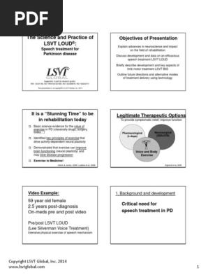 Exercise can help LSVîBIG LSVT BIG is a research-based exercise approach developed from principles of the effective Parkinsons specific speech treatment LSVT LOUD. Discuss development data and exercises for the efficacious speech treatment LSVT LOUD Describe development data and exercises of LSVT BIG What is Parkinson Disease. The content of this presentation is the property of LSVT Global and is for information purposes only.
